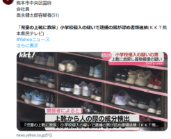 1 名前:おっさん友の会 ★:2025/04/22(火) 00:06:29.27 ID:OI0AOFFH9.net 熊本市の小学校で、児童の上靴に尿がかけられた事件の続報です。学校に侵入した疑いで4月に逮捕された男が、上・・・