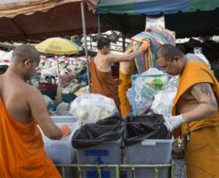 タイの僧侶たちがプラスチックごみをリサイクルして法衣を制作