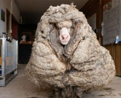重量なんと40kg!毛がのびきって謎の巨大な塊になった羊の救出大作戦