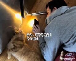 転がる系のおもちゃが好きな猫がいるご家庭では、隙間という隙間におもちゃが入り込んでしまう事態が発生する。 茶トラ柄の猫を3匹飼っているこちらのご家庭では、消えてしまったおもちゃを捜索する活動が行われていた。 猫に冷・・・