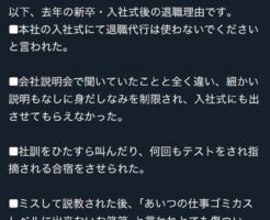1 名前:それでも動く名無し:2025/04/01(火) 12:35:30.31 ID:8zuuz8of0.net 本日現在4名の2025年度新卒社員の依頼がきています。 以下、去年の新卒・入社式後の退職理由です。■本社・・・
