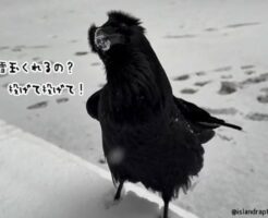 キャッチできるよ!雪玉を投げると上手にクチバシでとらえる賢いカラス