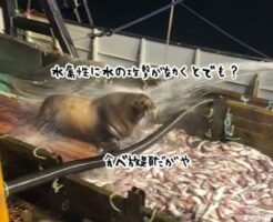 食べ放題やん!漁船に乗り込み魚を食べるトドを追い払おうとするも水攻撃は効かなかった