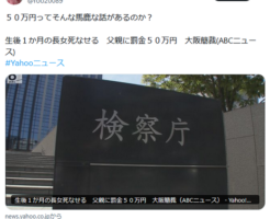 【大阪】生後1か月の長女死なせる 父親に罰金50万円