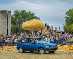 巨大カボチャ vs 廃車寸前の車、耐久勝負の結末は?