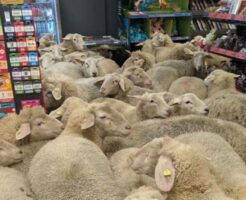 迷える羊たち。50匹もの大群がスーパーに乱入、店内はひっちゃかめっちゃか状態に