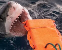 咬傷耐性テストでウェットスーツ用新素材に咬みつくホホジロザメ /image credit:Flinders University めったにないと知ってても着とけば心強いかも。海で楽しむサーファーやダイバーたちの頭の隅に・・・