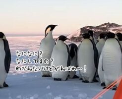 NZ Defence Force/Youtube 極寒の南極大陸で5日間にわたる気候訓練キャンプを行っていたニュージーランド空軍の隊員たちは思わぬ軍団に囲まれた。 雪原の向こうからヨチヨチと歩いてきたのは、数十羽のコ・・・