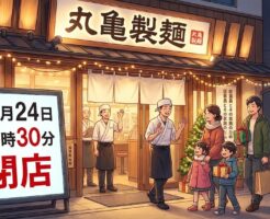 丸亀製麺「うーん、社員に報いたいな。せや!12月24日の閉店時間を15:30にして家族と過ごす時間を作ったろwwwww」