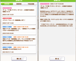サイゲとコナミの和解は大事なことなのでログインしたらまず開くお知らせに書きました pic.twitter.com/cUPGpdrRdR — 怪しい隣人 (@BlackHandMaiden) November 7, 202・・・