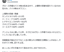 なんか日本のバイオベンチャーって、もう乗りかかった船だけど成功するとは思えない、というフェーズに入ってから上場準備を始めてるんじゃないのかね。成功する目があるうちは上場しないという。もちろん陰謀論です。 — ほいみん (・・・