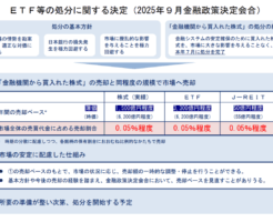 1: 2025/09/19(金) 13:53:58.88 ID:lVpm4Uly9 19日の東京株式市場、日銀が大規模金融緩和の一環で大量に買い入れてきたETF=上場投資信託について市場への売却を始めると発表したことを受・・・