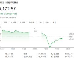 【相場】日経平均、500円高からのETF売却発表で一時800円安 その後下げ幅を縮め200円安