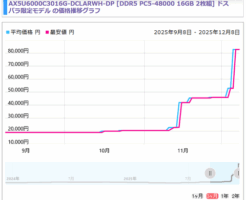 【悲報】去年17,800円で買った16GB×2枚のメモリ、今月ついに価格が82,800円まで高騰するもう終わりだよこの界隈 pic.twitter.com/sKoZQWQpII — ホタ (@hota_tw) Decem・・・