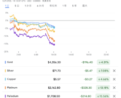 【悲報】ゴールド、シルバー、銅、プラチナ、パラジウム、一斉に大暴落wwww