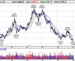 この株価下落はシンデレラ城の屈辱として歴史に名を残す(残さない) — 満州中央銀行 (@kabutociti) April 30, 2025 https://kabutan.jp/stock/chart?code=466・・・