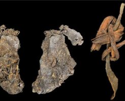 縫い合わされた皮や皮の繊維 Image credit: Rosencrance et al, Science Advances 2026 (CC BY-NC 4.0) アメリカ、オレゴン州の洞窟で、約1万2400年前に・・・