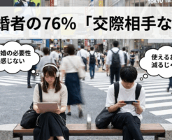 1: 2026/02/13(金) 12:57:39.04 ID:qla1xtbr9 明治安田総合研究所の「恋愛・結婚に関するアンケート調査」で、未婚者の4人に3人以上となる76・3%が「交際相手はいない」と回答し、交際相・・・